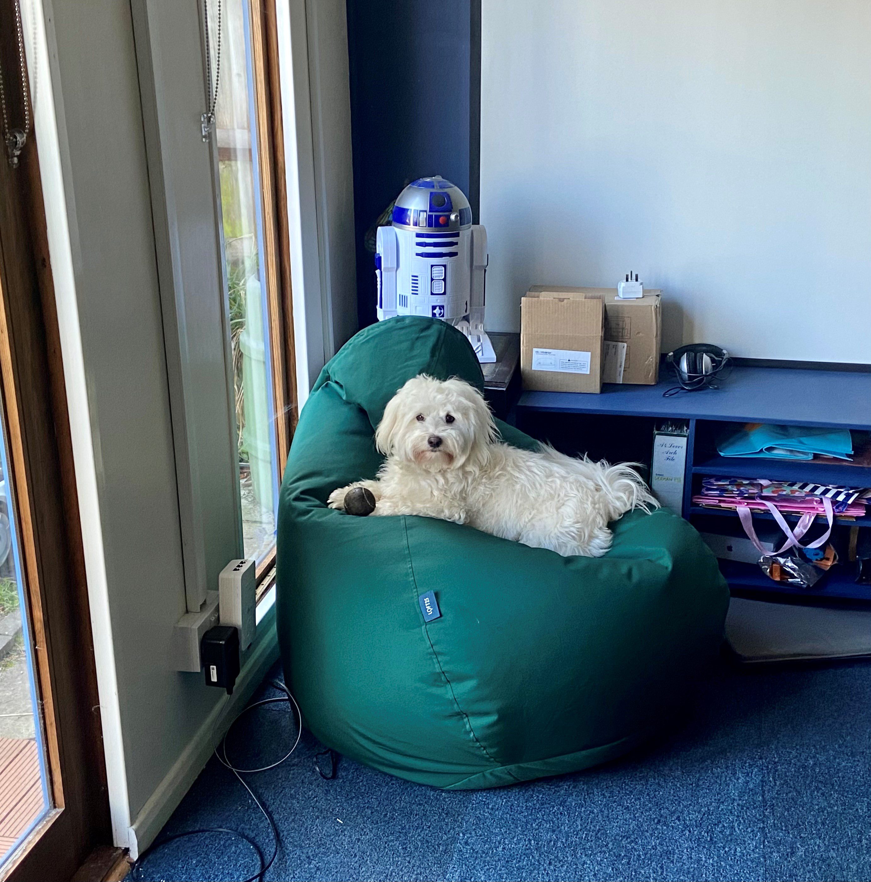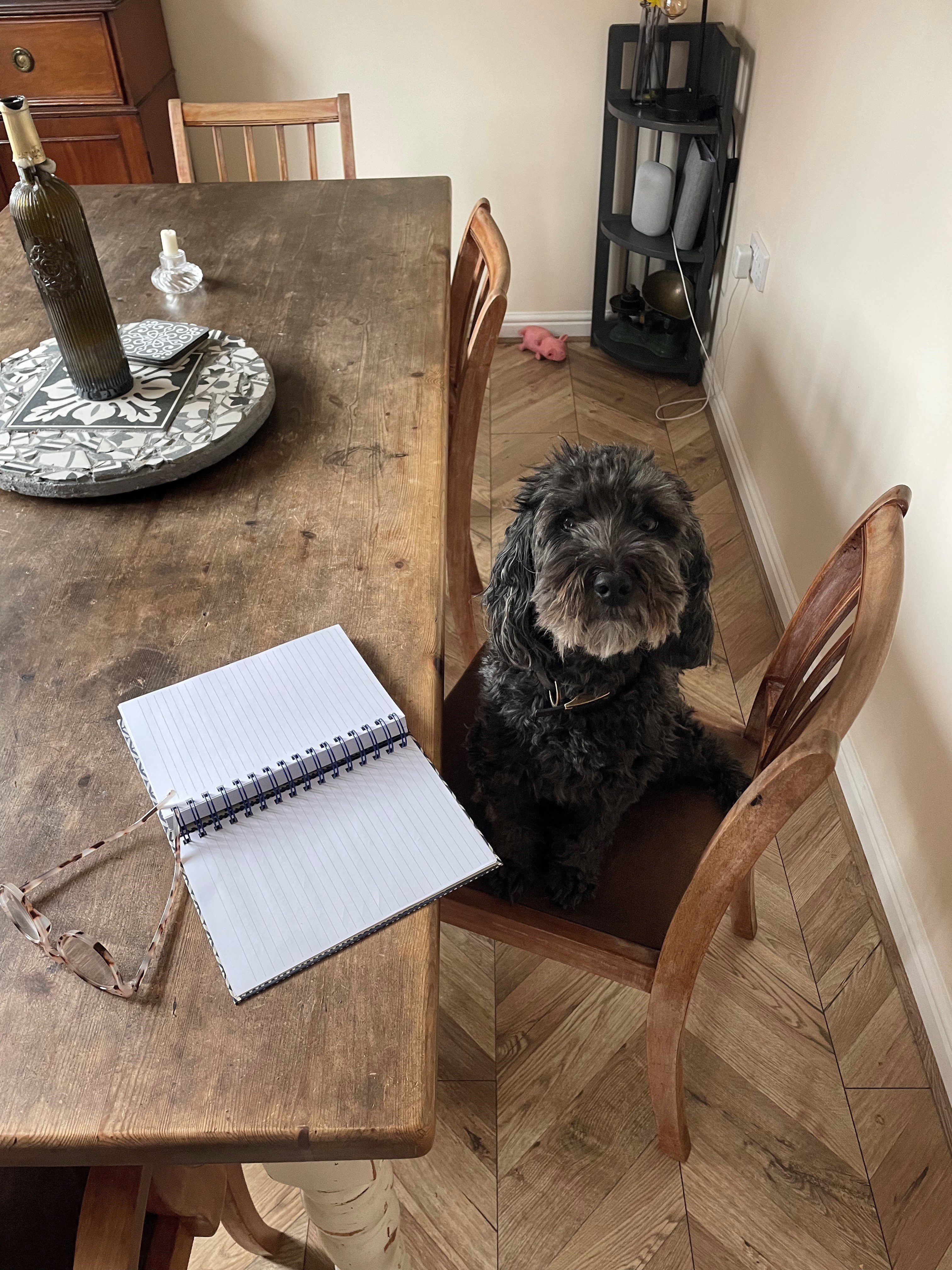 Albie is a Cockerpoo. If ever we need a bit of support brainstorming idea, Albie is great help with this. Although,as you can see, he is an old school paper notebook kind of guy. He tends to fall asleep on the keypad when faced with a laptop!