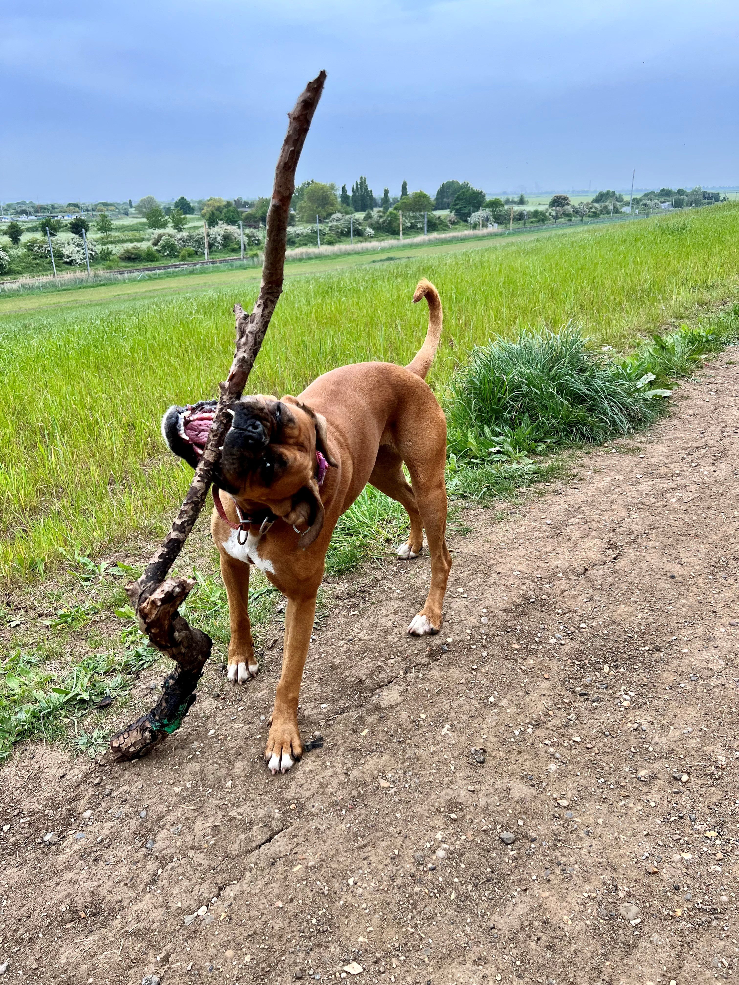Layla is a boxer, who is currently being dog-sat. She is always very keen to ensure that work-life balance is maintained. Log wrestling is an optional extra!